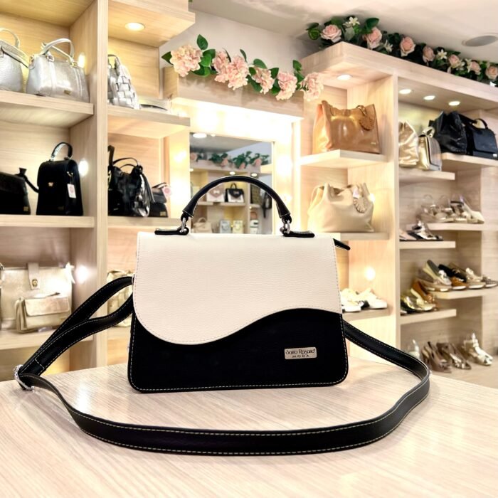 Bolso Pequeño Redondo Negro Combinado En PVC