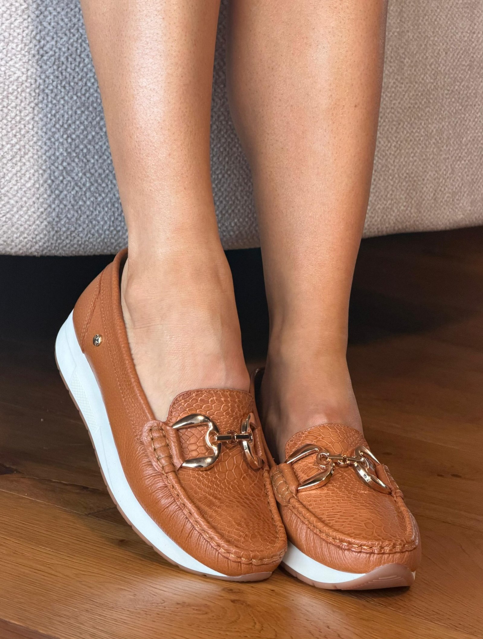 Mocasín Dorado En Cuero