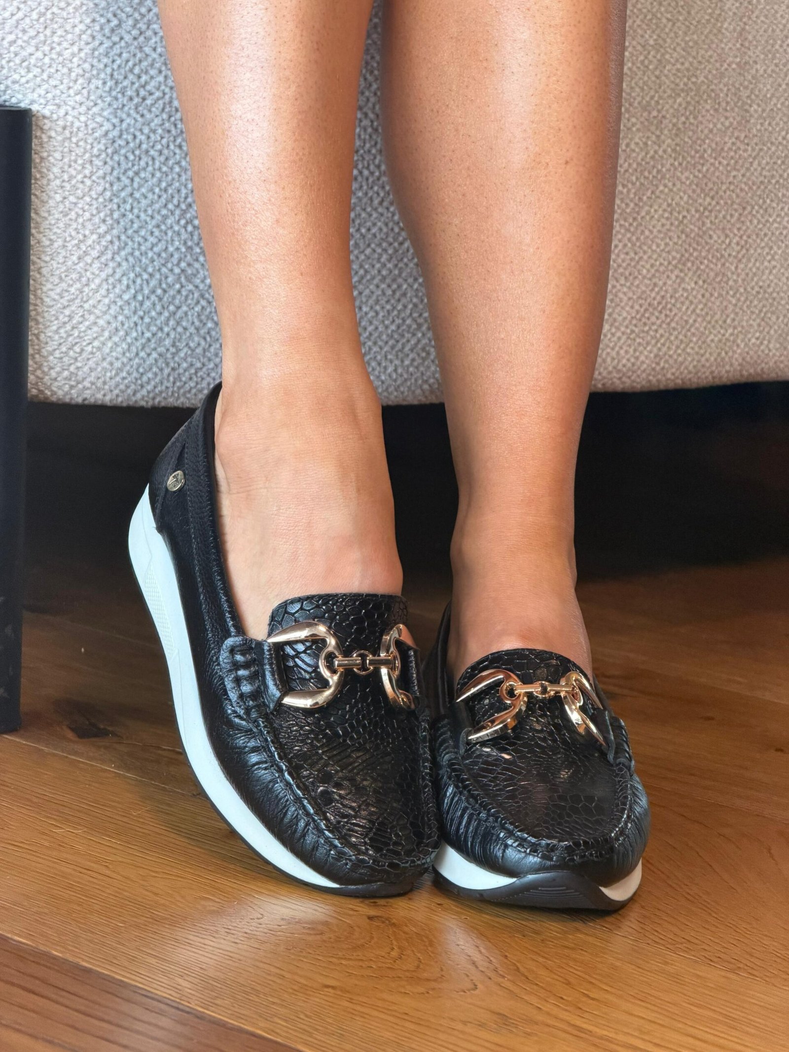 Tenis Estrella Nude con Dorado y Negro En Cuero