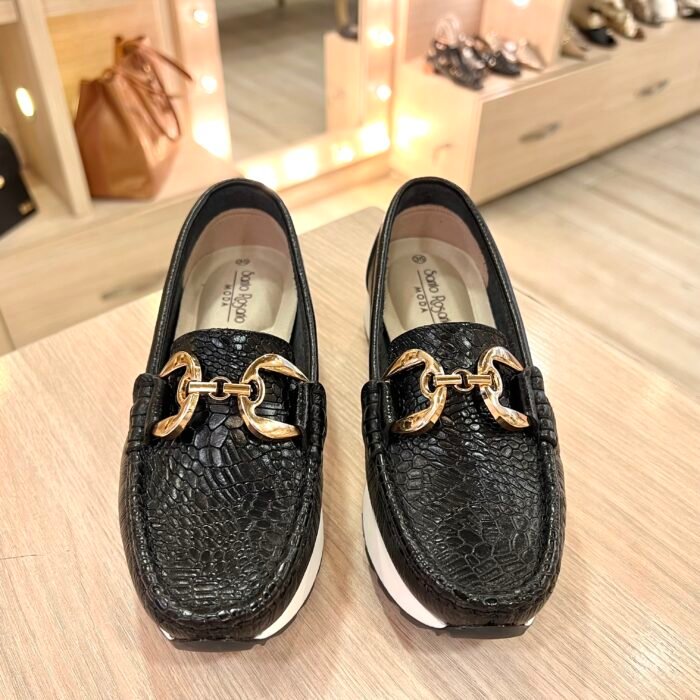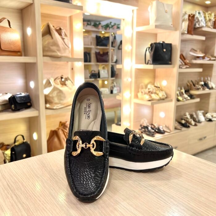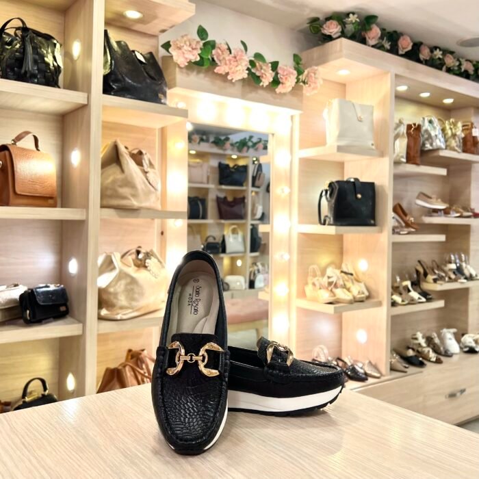 Mocasín Hebilla Negro En Cuero