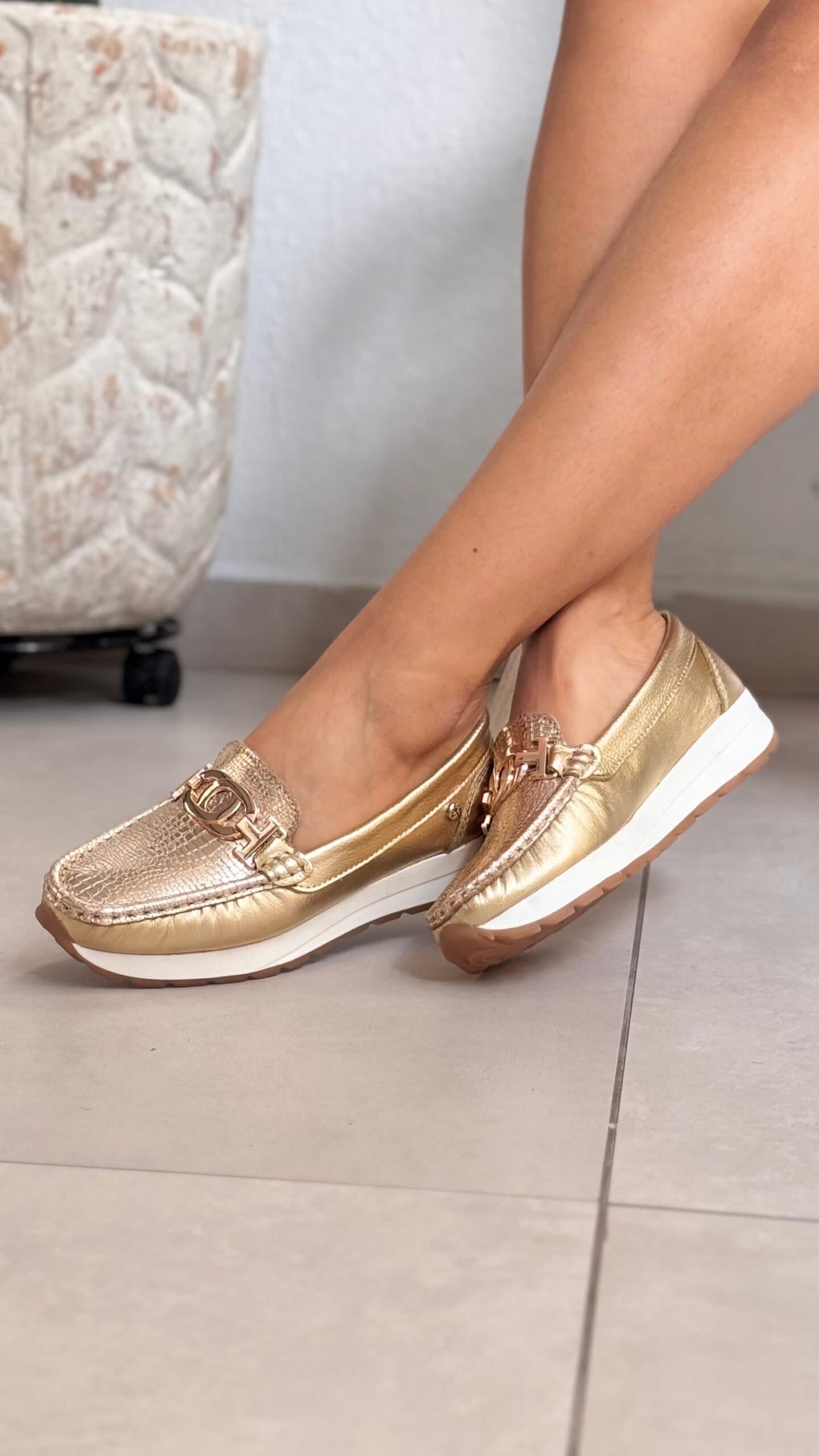 Mocasín Hebilla Redonda Dorado En Cuero