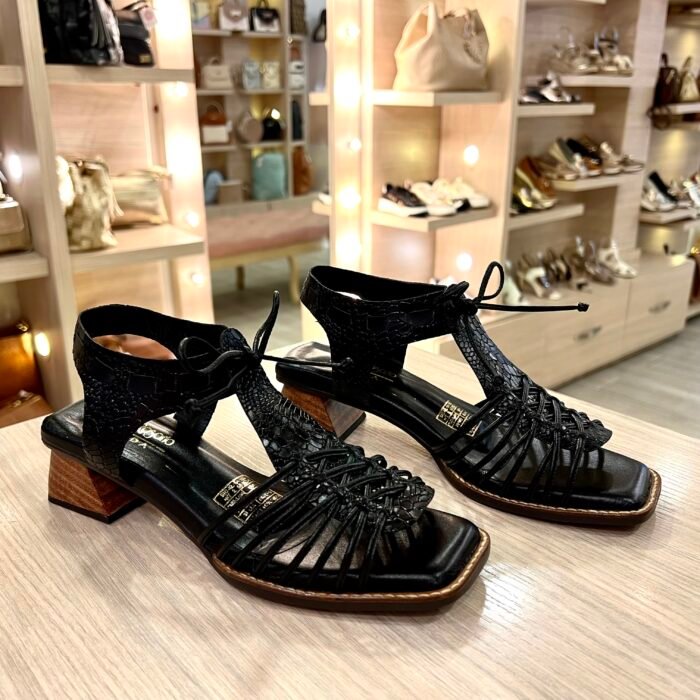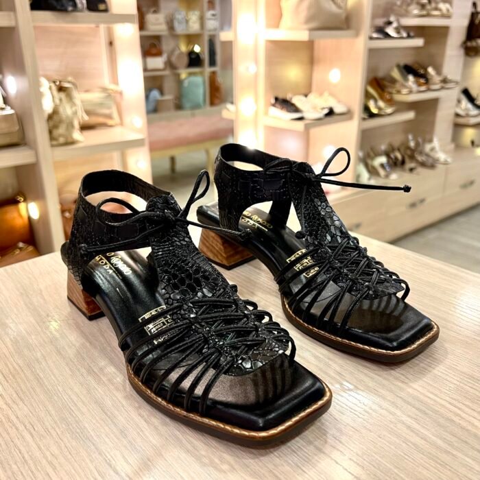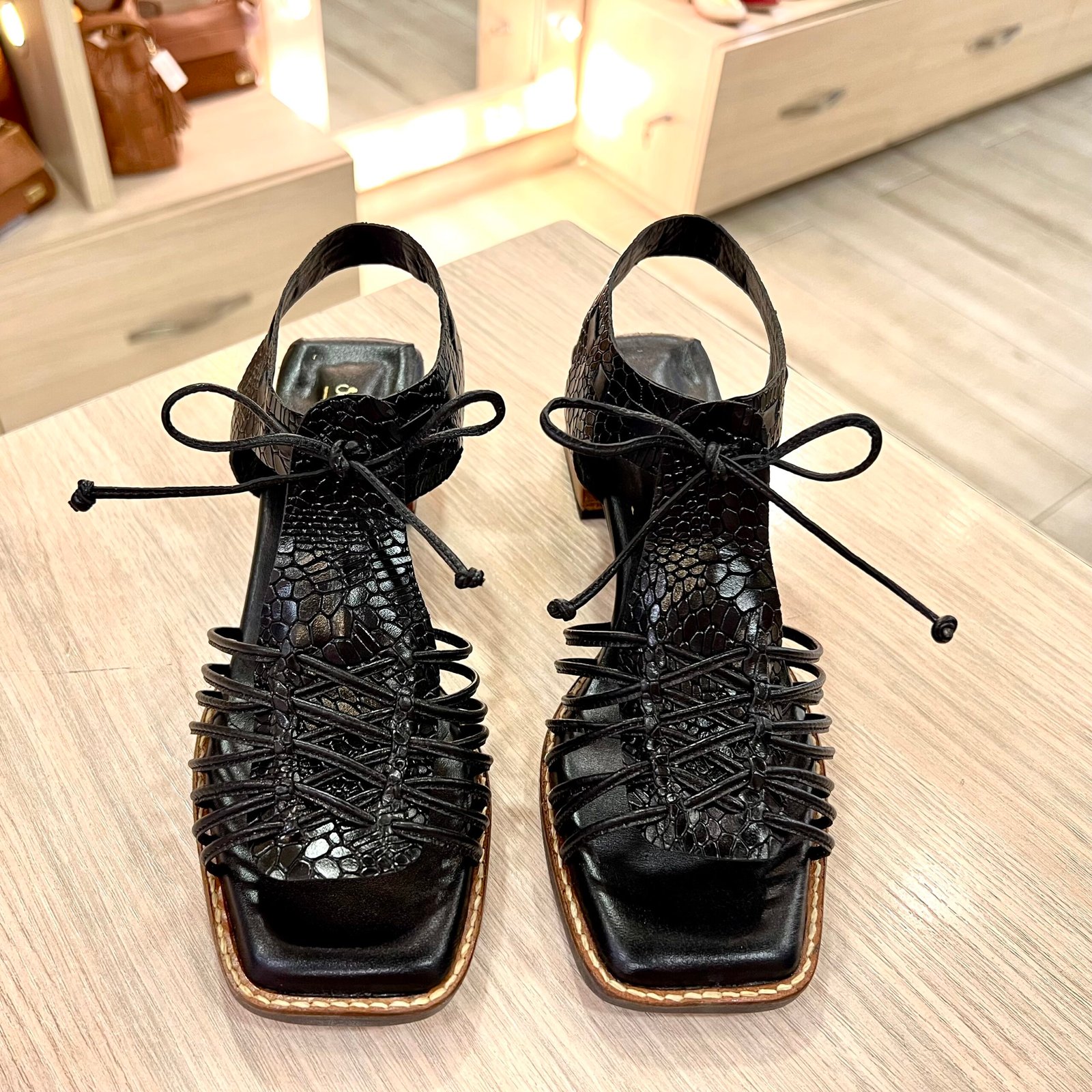 Sandalia Cordón Negra Tacón 3½ En Cuero