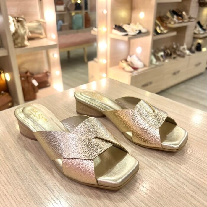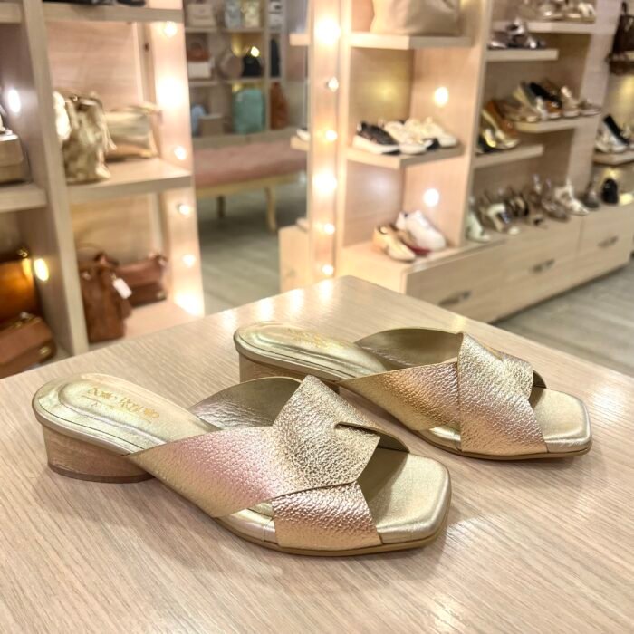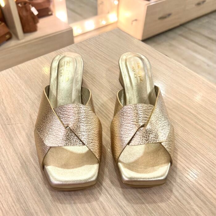 Sandalia Cruzada Dorada Tacón 3½ En Cuero
