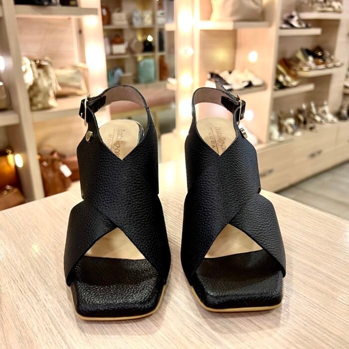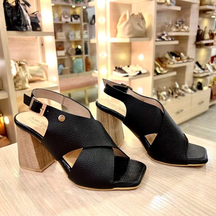 Sandalia Cruzada Negra Tacón 7½ En Cuero