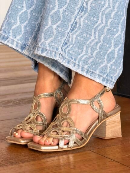 Sandalia Dorada Monedas Tacón 5½ En Cuero
