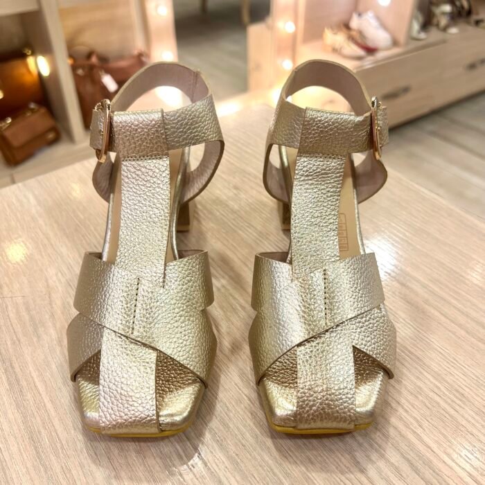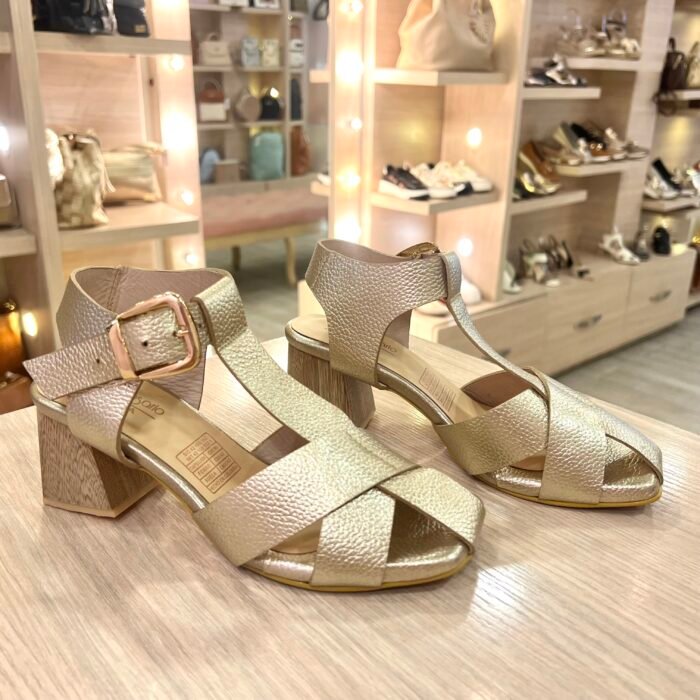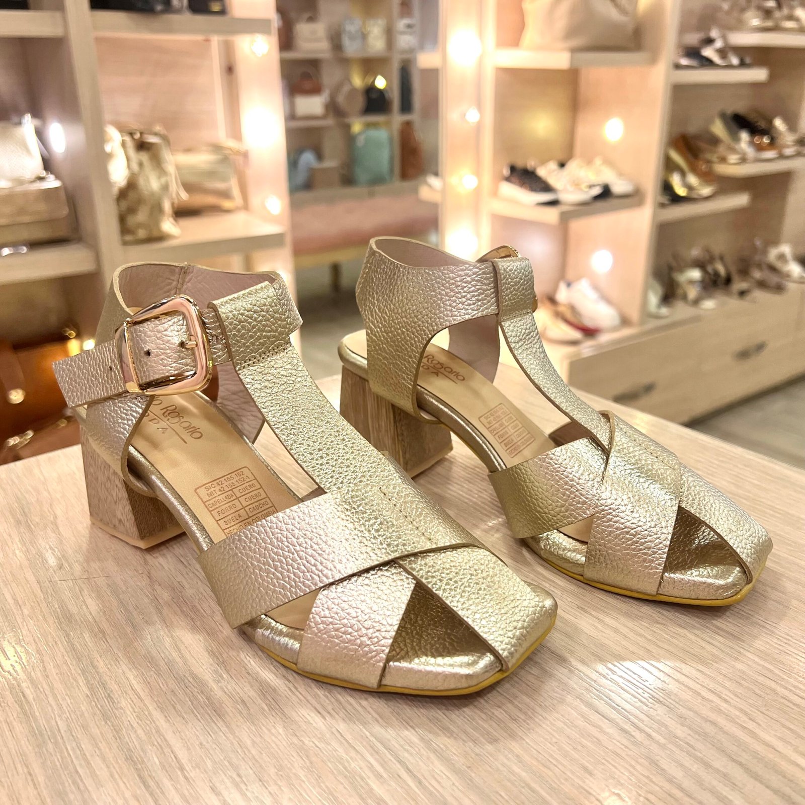 Sandalia Roma Dorada Tacón 5½ En Cuero