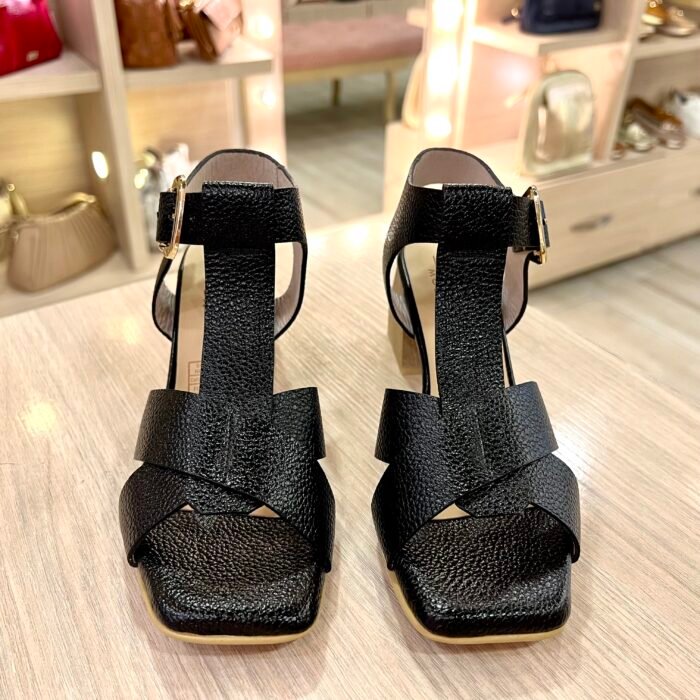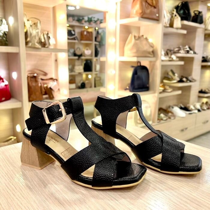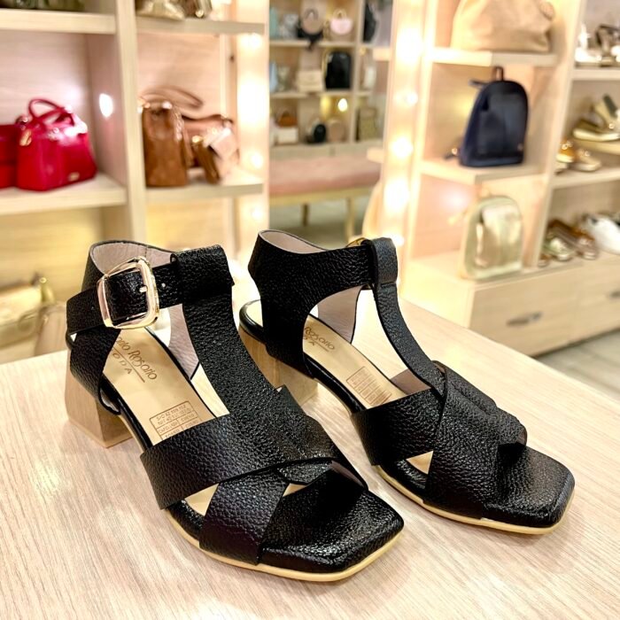 Sandalia Roma Negra Tacón 5½ En Cuero