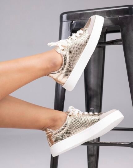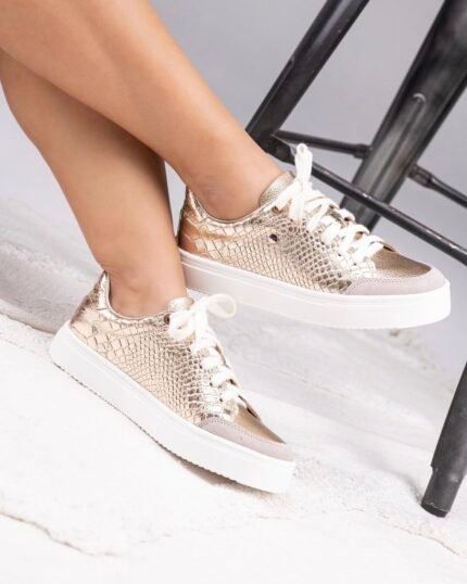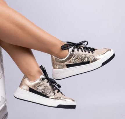 Tenis Estrella Nude con Dorado y Negro En Cuero