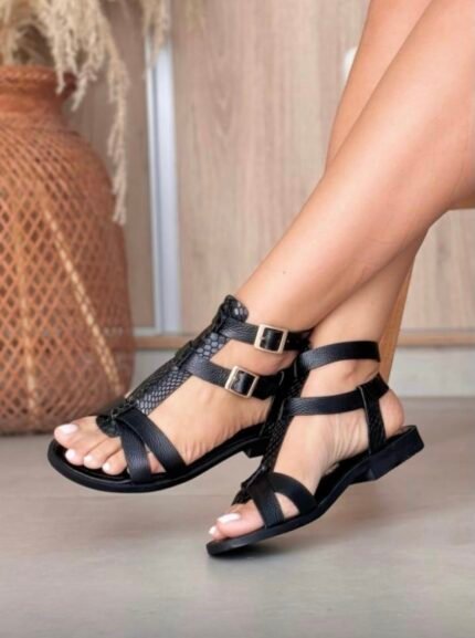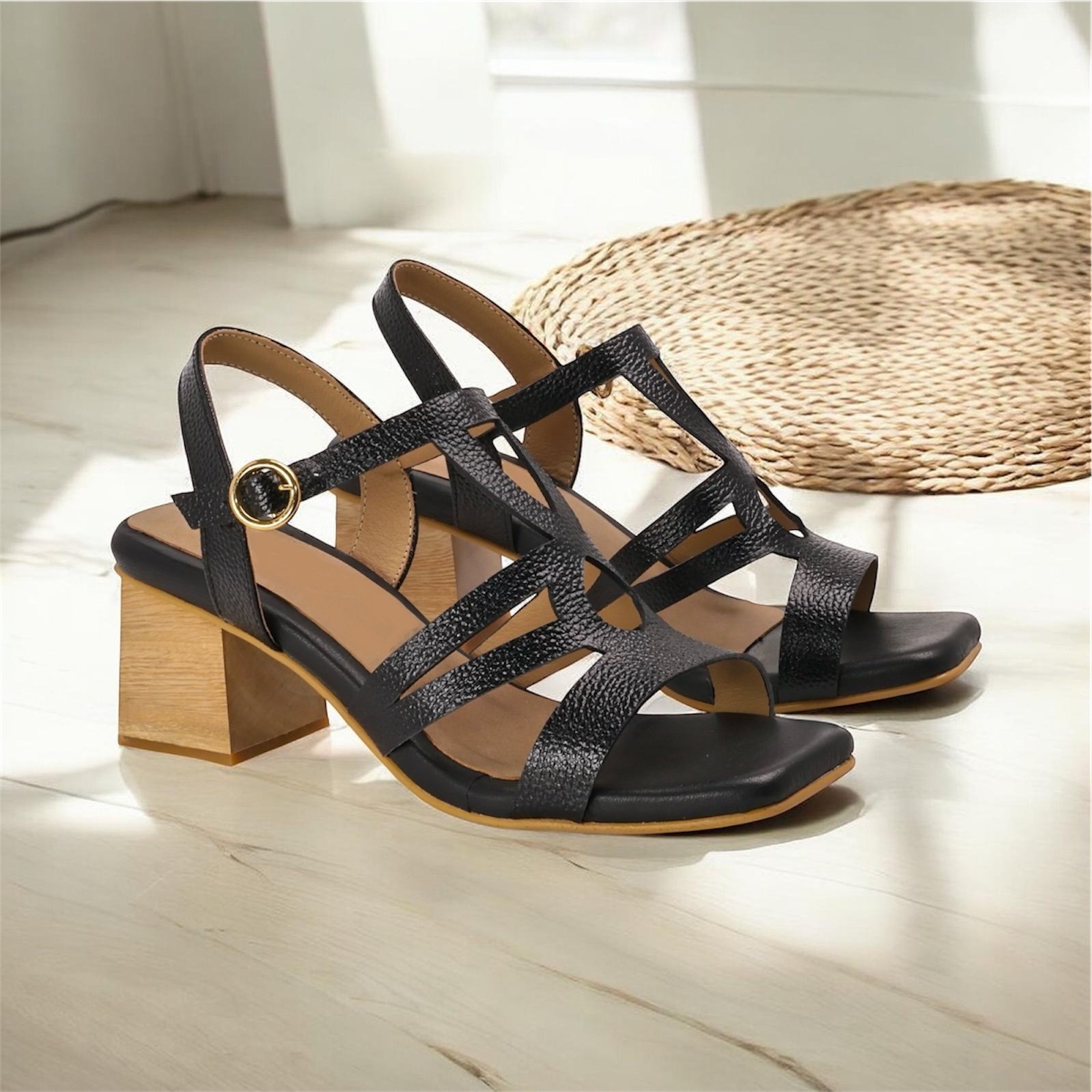 Sandalia Zoe Negra Tacón 5½ En Cuero