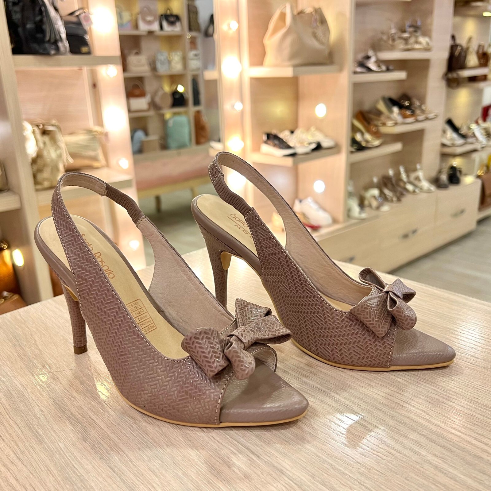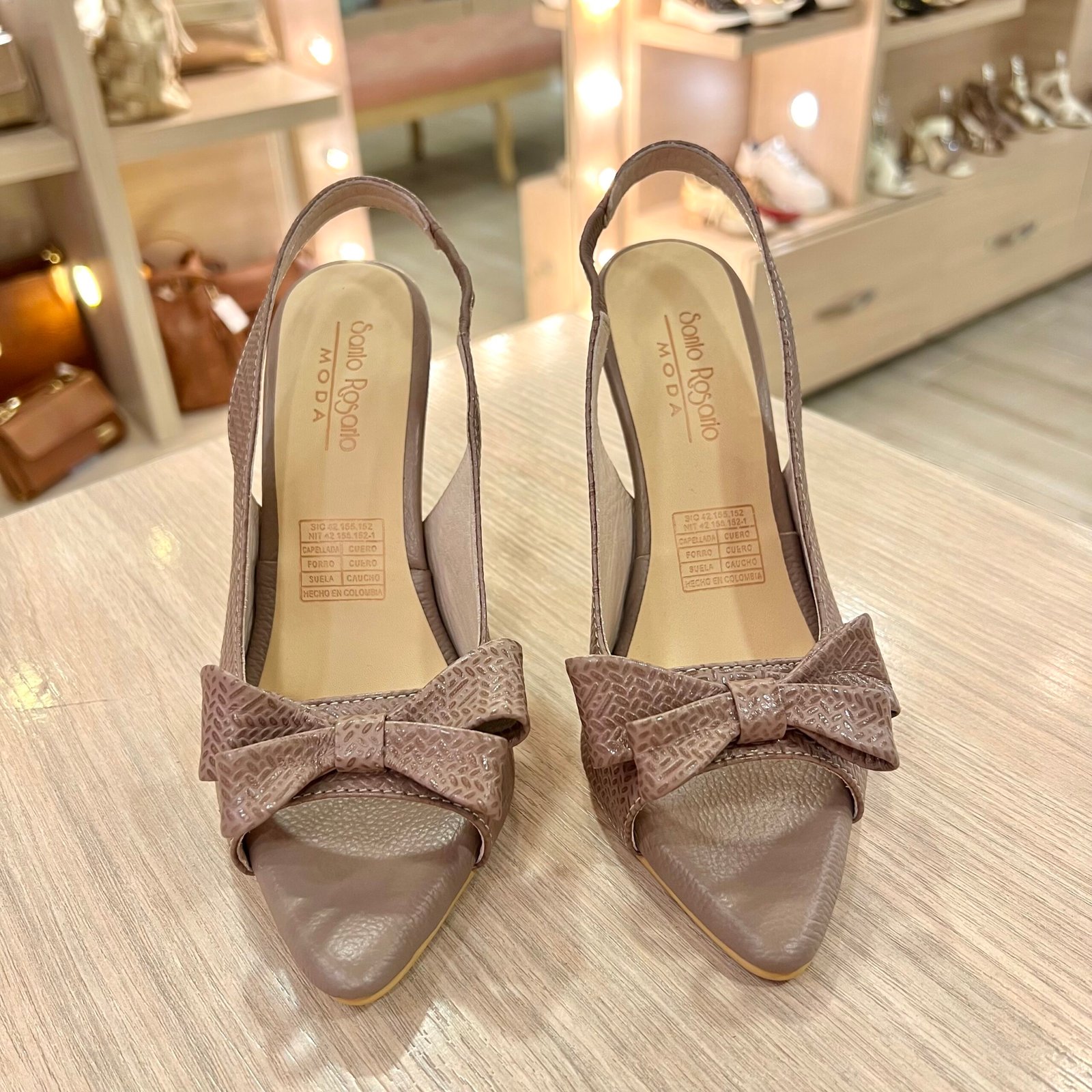 Tacón Delgado 7½ Nude Con Moño En Cuero