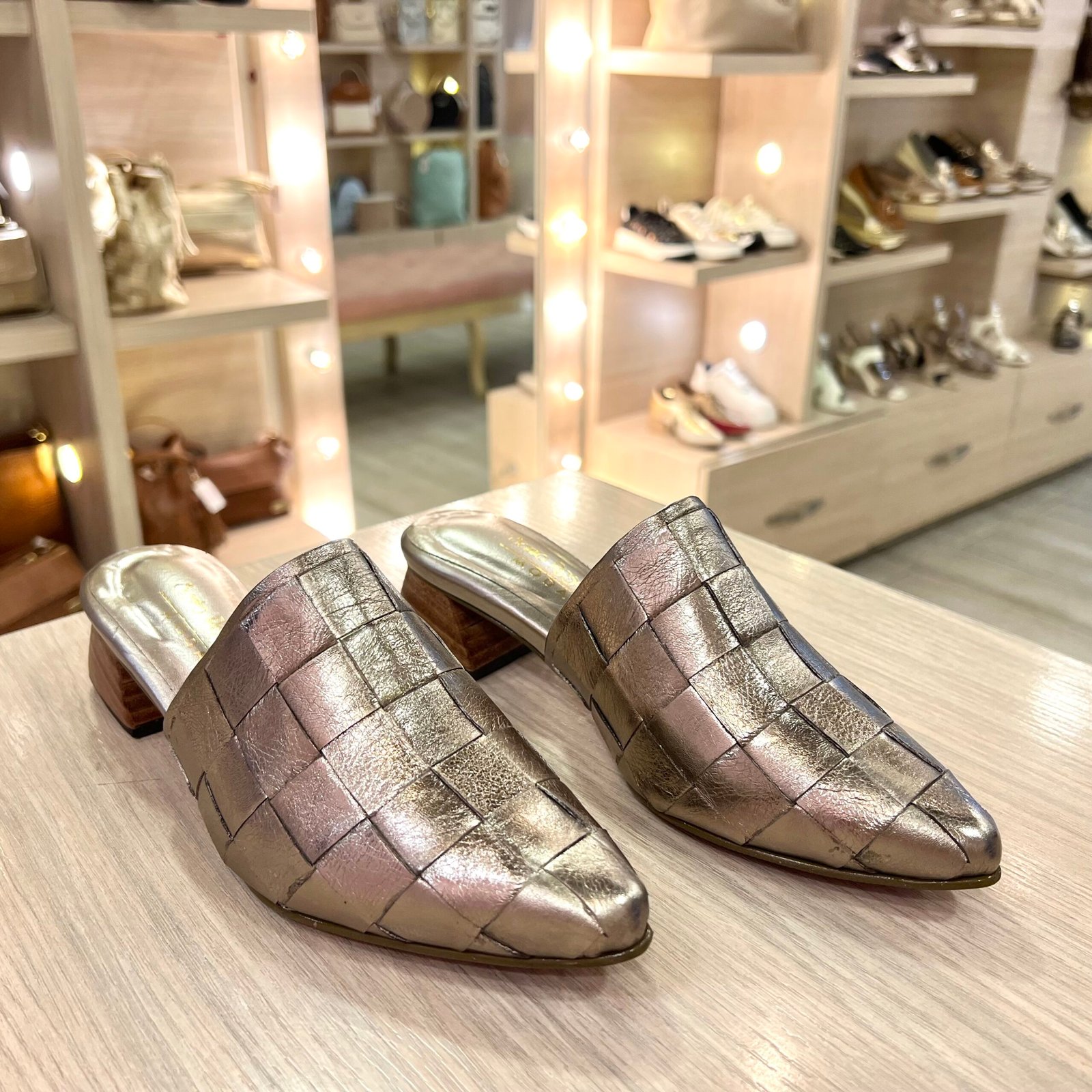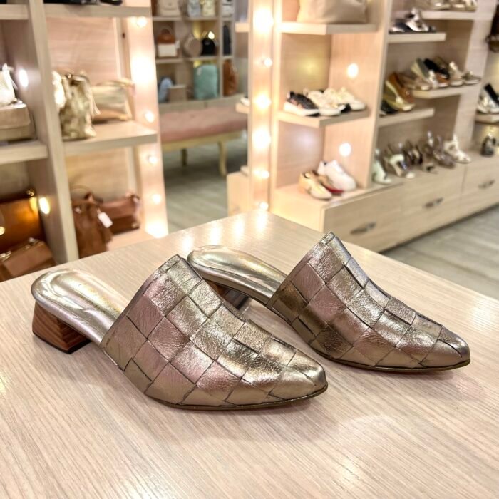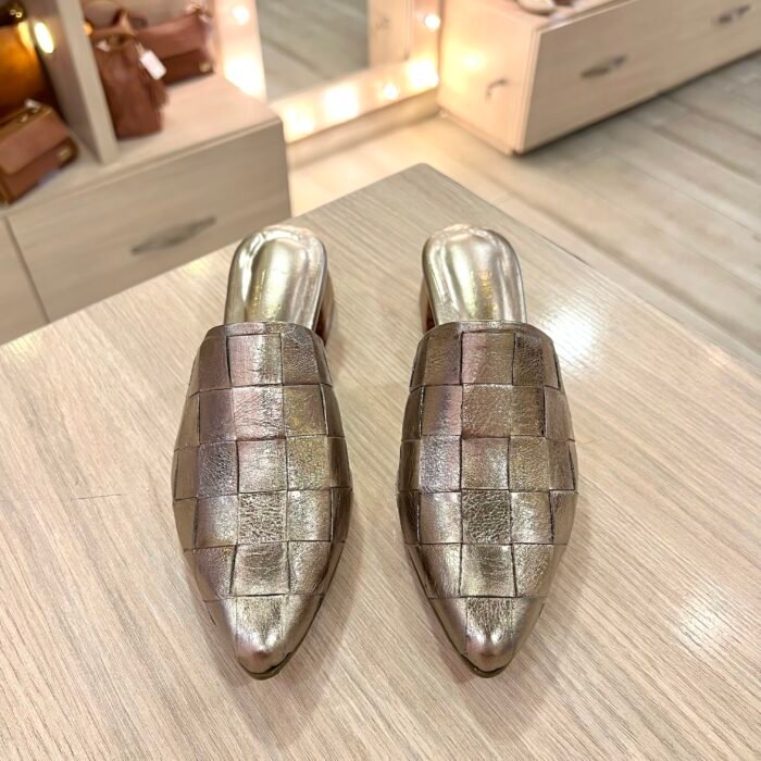 Tacón Tejido Champaña Tacón 3½ En Cuero